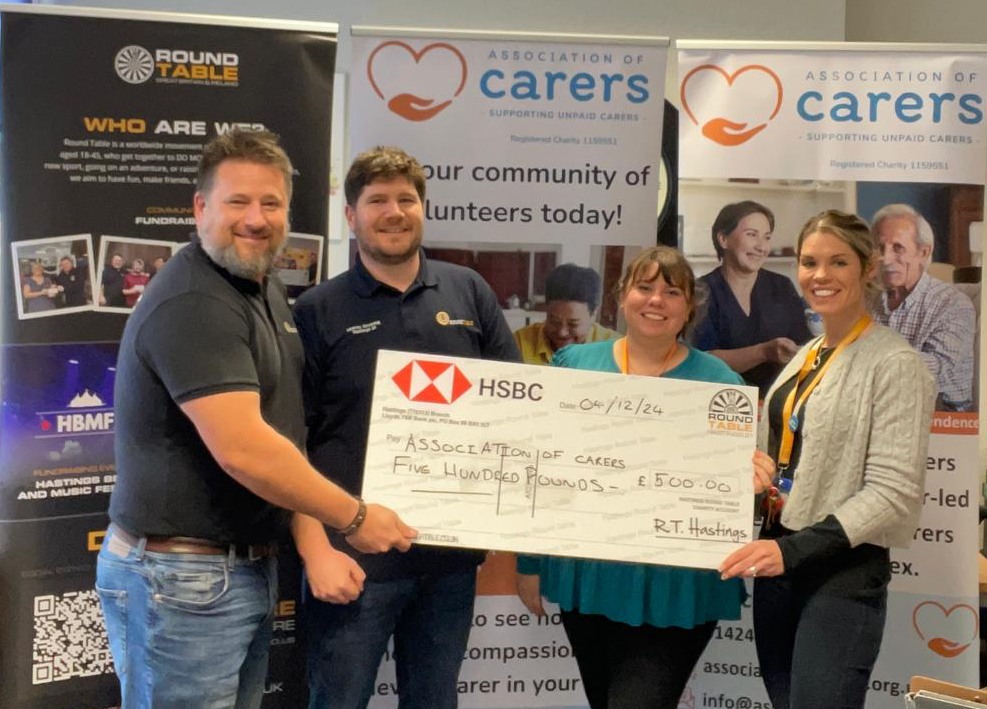 Hastings Round Table was delighted to donate to the Association of Carers, who provide volunteer-led support services to carers across the area.